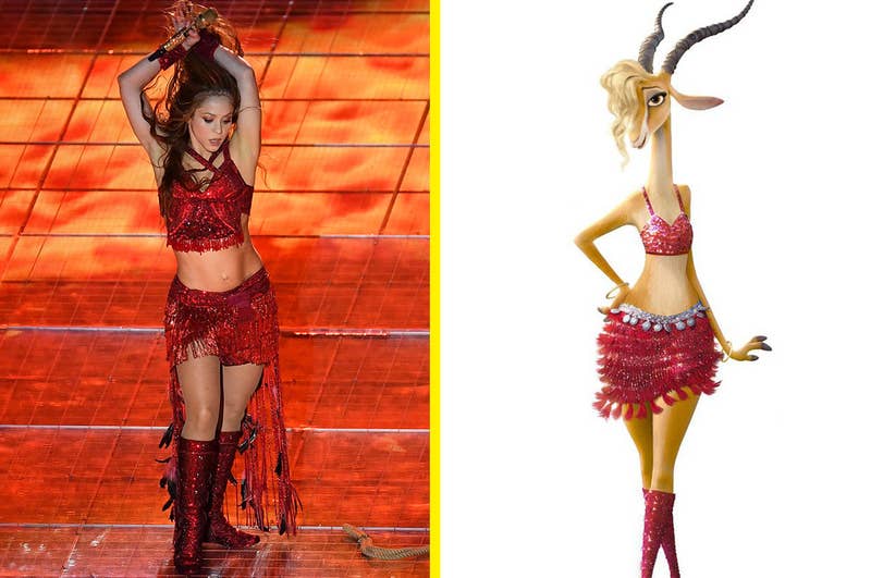 What makes things even better is that Shakira's character in Zootopia also performs at something that looks very similar to the Super Bowl.